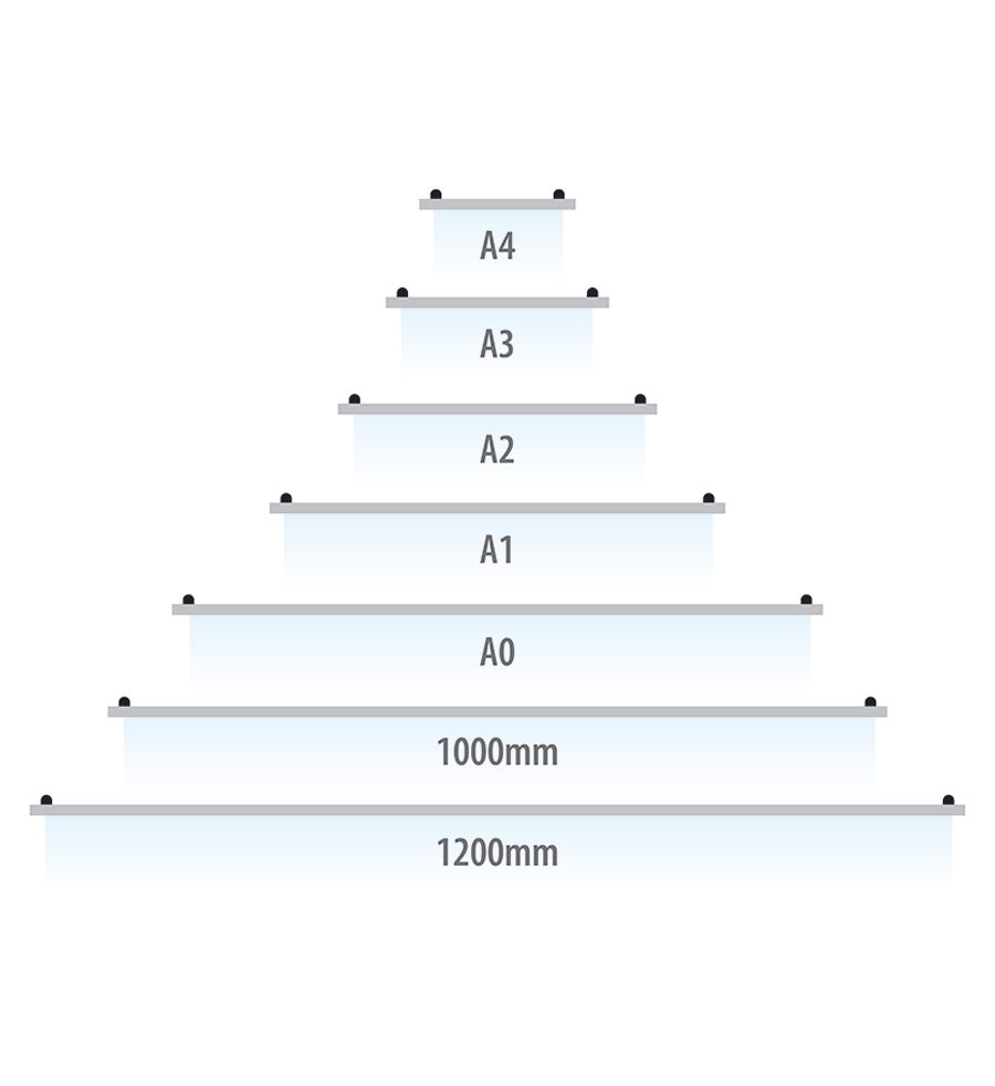 • Available in 7 sizes – A0, A1, A2, A3, A4, 100mm and 1200mm